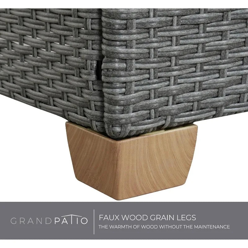 BULT TO LAST: This 5 pieces patio furniture set‘s each modular piece features double-strand all-weather resin wicker woven over rust-resistant powder-coated zinc steel frames built to withstand the outdoor elements. Olefin cushion covers are UV-resistant, stain, and moisture resistant in soft to the touch comparing to standard polyester, and suitable for outdoor use. Wood-look feet are environmental-friendly and maintenance free.